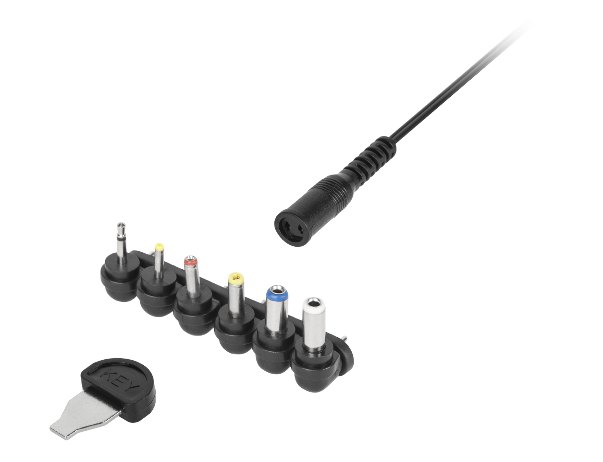 Kemot 500mA jest wyposażony w sześć uniwersalnych wtyków (3,5x1,35 mm, 5,5x2,1 mm, 5,5x2,5 mm, 2,35x0,7 mm, 4,0x1,7 mm, 2,5 mm mono), co zapewnia kompatybilność z szerokim wachlarzem urządzeń. Kontrolka LED sygnalizuje stan pracy zasilacza, ułatwiając monitorowanie jego działania i zapewniając dodatkowe bezpieczeństwo podczas użytkowania.