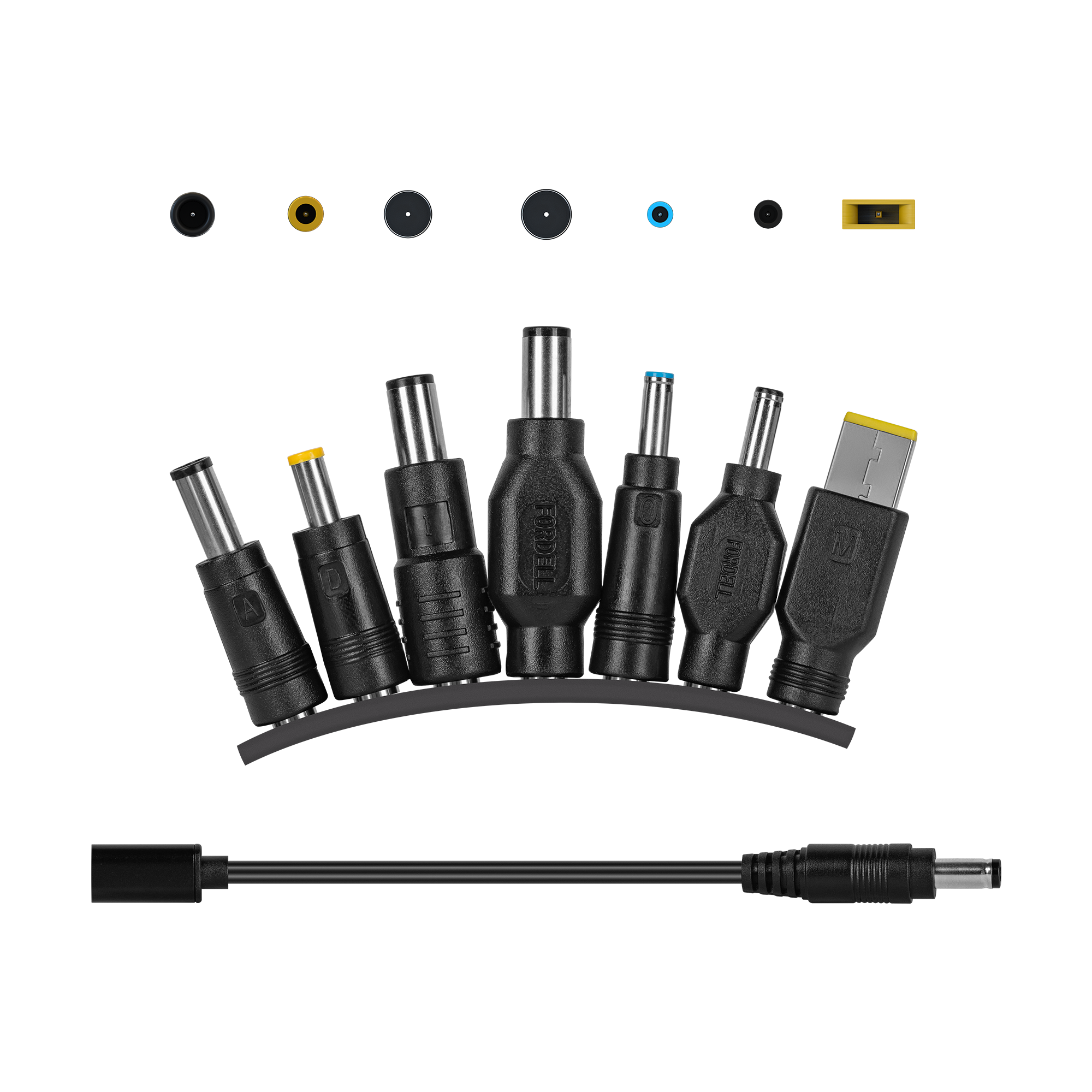 W zestawie znajdziesz aż 7 wymiennych końcówek kompatybilnych z popularnymi markami, takimi jak Dell, HP, Lenovo, Sony czy Samsung. Dzięki temu jeden zasilacz wystarczy do obsługi kilku laptopów w domu lub firmie. To idealne rozwiązanie dla osób korzystających z różnych urządzeń albo szukających zapasowego, uniwersalnego zasilacza.