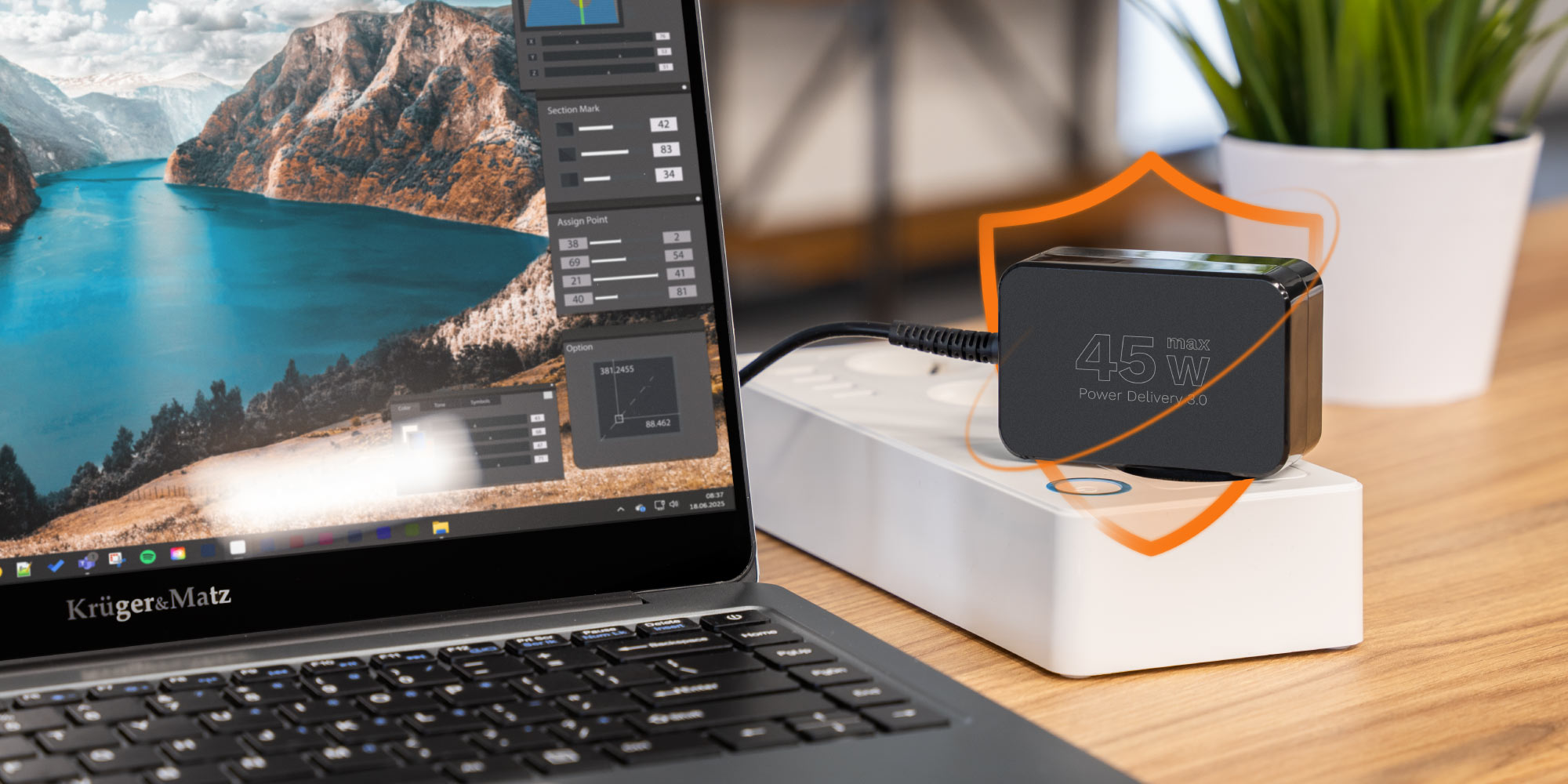 Zasilacz uniwersalny Kruger&Matz 45W z funkcją Power Delivery