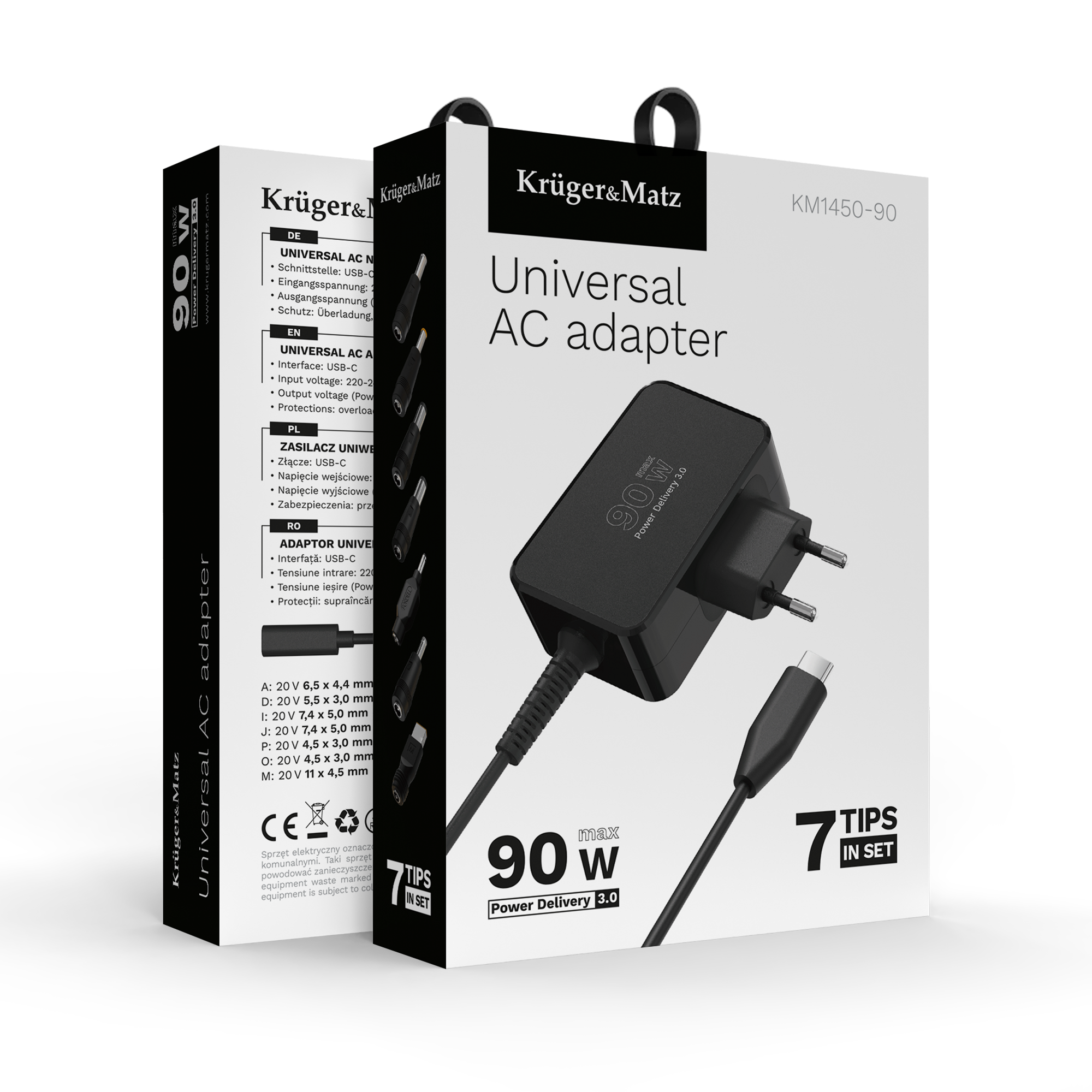 Zasilacz uniwersalny Kruger&Matz 90W z funkcją Power Delivery 7 końcówek