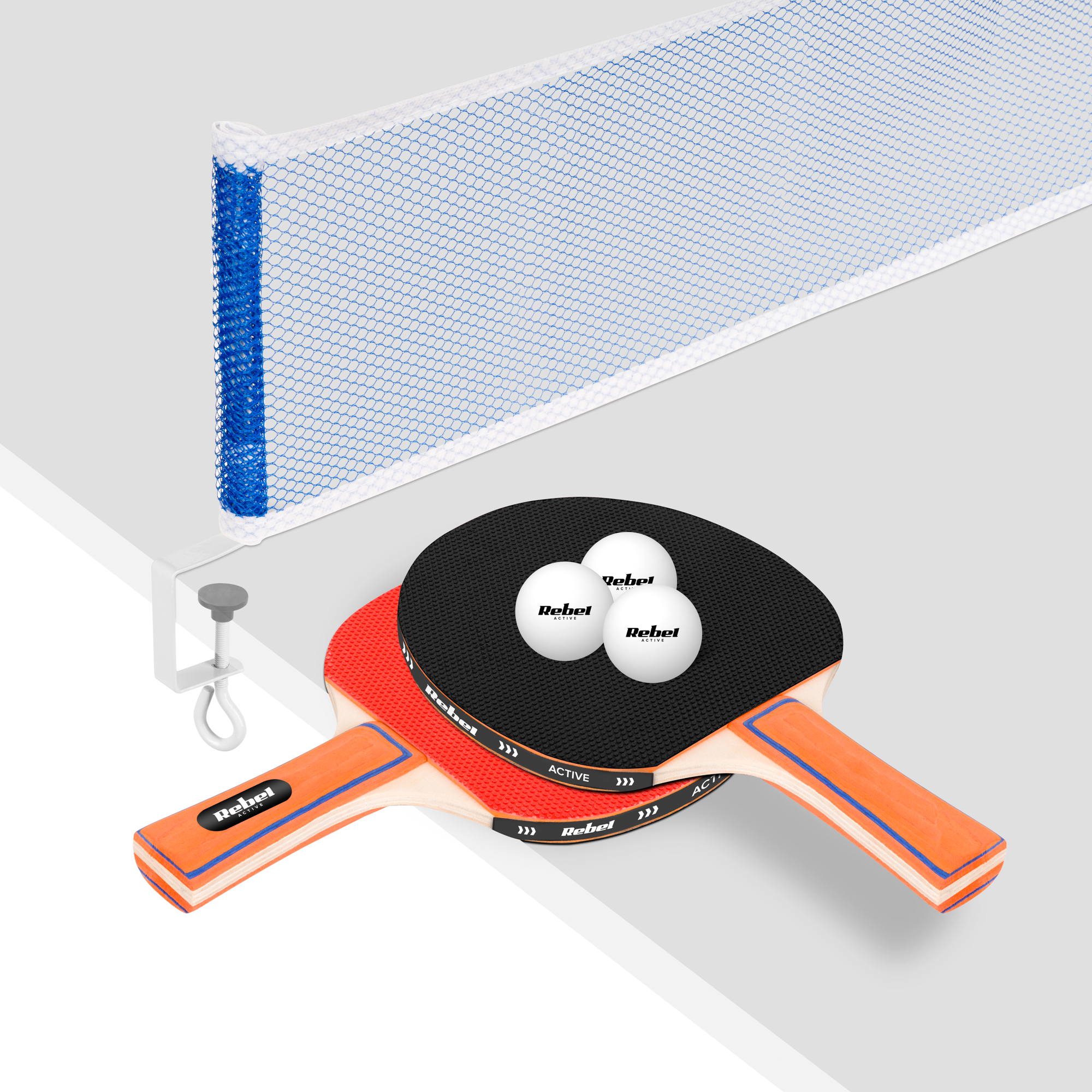 Zestaw rakietek do tenisa stołowego ping ponga z siatką REBEL ACTIVE