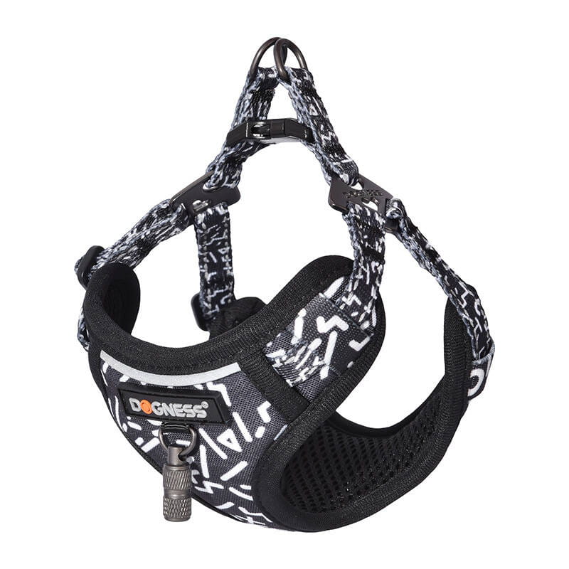 Zestaw spacerowy DOGNESS smycz 1,5m + szelki (czarno-biała)