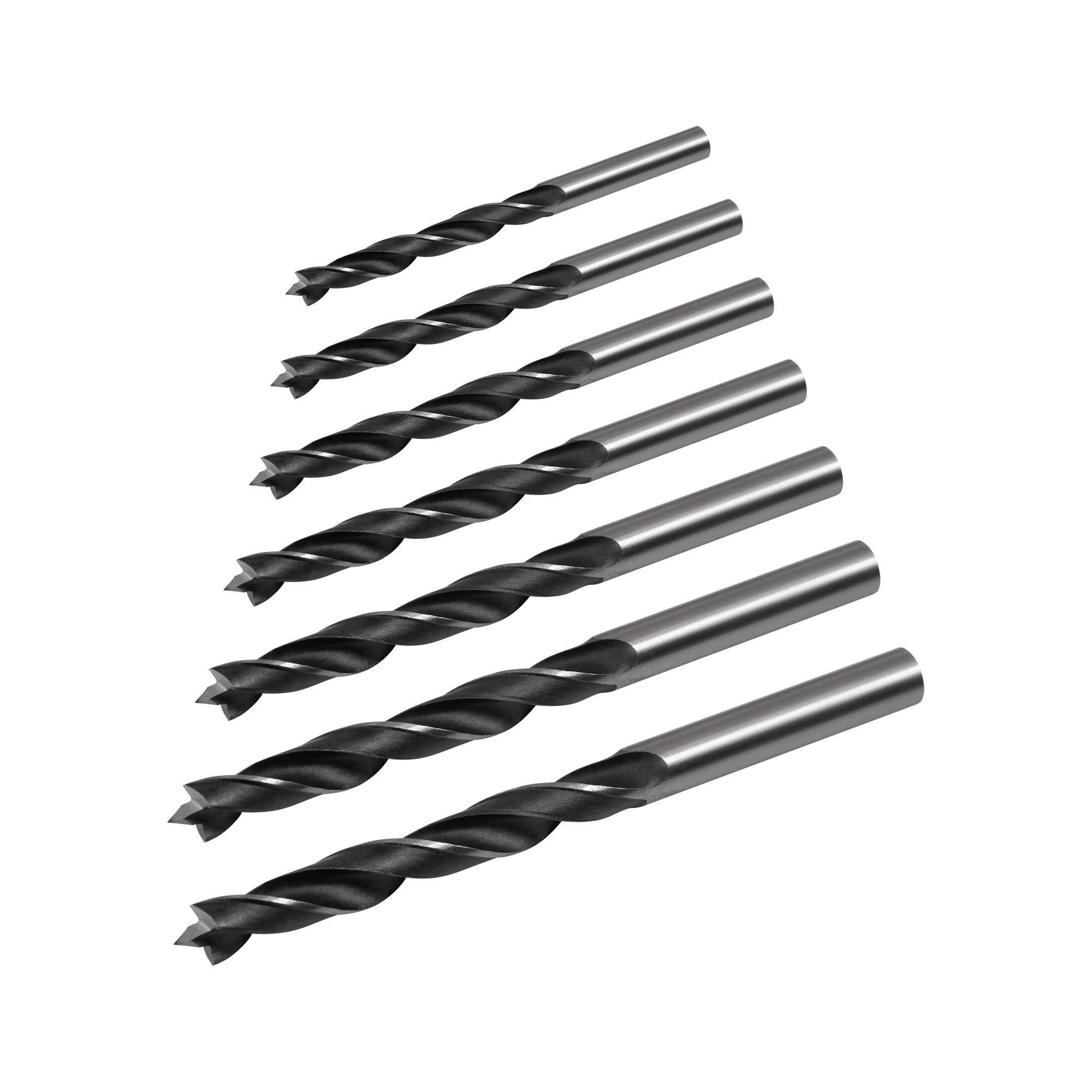 W zestawie znajdują się wiertła o średnicach: 3 mm, 4 mm, 5 mm, 6 mm, 7 mm, 8 mm, i 10 mm, co pozwala na precyzyjne wiercenie otworów o różnej wielkości. Ostre końcówki wierteł gwarantują dokładne cięcia, minimalizując rozszczepienie drewna oraz zapewniając czyste i estetyczne otwory.